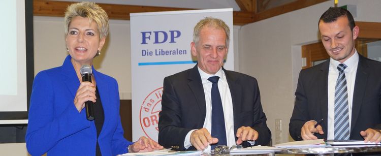 Parteipräsident Marc Mächler ging in seiner Begrüssungsrede auf die jüngsten FDP-Wahlerfolge in mehreren Kantonen ein. Der Umstand, dass die FDP insbesondere in Zürich von allen anderen Parteien das Vertrauen von zahlreichen Wählern habe zurückgewinnen können, stelle den Verantwortlichen vor Ort ein sehr gutes Zeugnis aus. Die klare Positionierung der FDP als liberaler Pol im Parteienspektrum und das nicht minder klare Bekenntnis zu den grundlegenden Werten unseres Erfolgsmodells Schweiz beginnen nun Früchte zu tragen, so Mächler. Nun gelte es, die positive Stimmung innerhalb der Partei im Herbst in einen weiteren Erfolg umzumünzen. „Das wird kein Selbstläufer“, mahnte der Präsident die Zuhörer. „Die jüngsten Siege sind das Ergebnis harter Arbeit im Wahlkampf. Wenn wir unseren Teil zum freisinnigen Erfolg beitragen wollen, sind nebst den Kandidierenden sämtliche Parteimitglieder gefordert. Der Gewinn eines zweiten Nationalratsmandats erfordert den Einsatz von uns allen!“