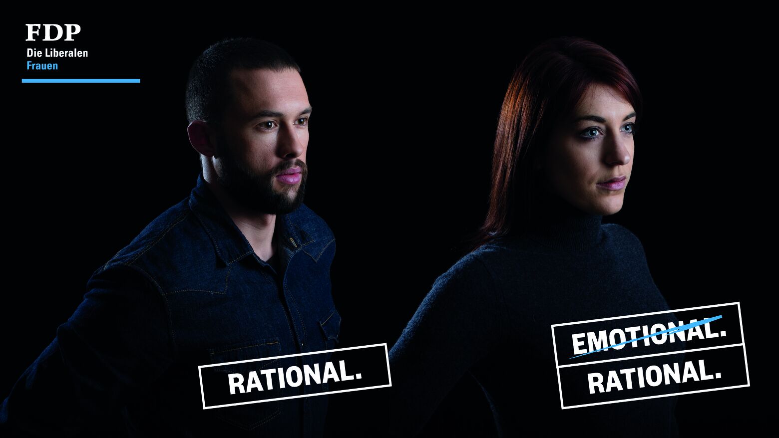 „Bei der Umsetzung sind wir nach dem Prinzip ‹reduce to the max› vorgegangen. Wir haben versucht, alle möglichen Kontextfaktoren buchstäblich auszublenden und auf Gesichter zu fokussieren, die im exakt im selben ‹Mood› aufgenommen wurden. Damit wird die Allgemeingültigkeit der Botschaft herausgestrichen. Unabhängig von Status, Herkunft, Branche etc. sind Frauen und Männer mit diesen Kategorisierungen und unterschiedlichen Bewertungen konfrontiert“, schildert Karin Fagetti, Mitglied der Wahlkampfleitung der FDP Frauen und Inhaberin der mit der Ausführung betrauten Kommunikationsagentur. Dabei betont sie: „Es war uns wichtig, keine Frauenkampagne auf Kosten der Männer zu lancieren – Frauen und Männer werden mit Respekt gezeigt.“