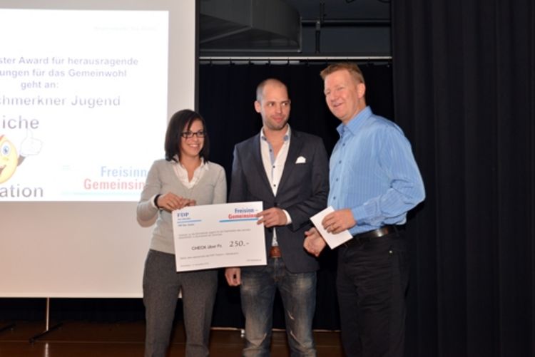 «Hinderlich ist höchstens der immer grösser werdende administrative Aufwand, welcher ausufernde Tendenzen annehme», führte Matthias Gschwend aus. Er weiss, wovon er spricht und forderte die Politik auf, sich über Sinn und Unsinn von Administrativhürden, Gesetzen und Vorschriften vertieft Gedanken zu machen. Im Anschluss an die Mitgliederversammlung und die Präsentation des «Rockfest» überreichte Peter Zuberbühler den beiden Schmerknern den 1. Award der FDP See-Gaster zugunsten eines regionalen Projektes zum Thema «Freisinn-Gemeinsinn». Die spontan erfolgte Sammelaktion unter den Anwesenden rundete den Preis noch etwas auf.